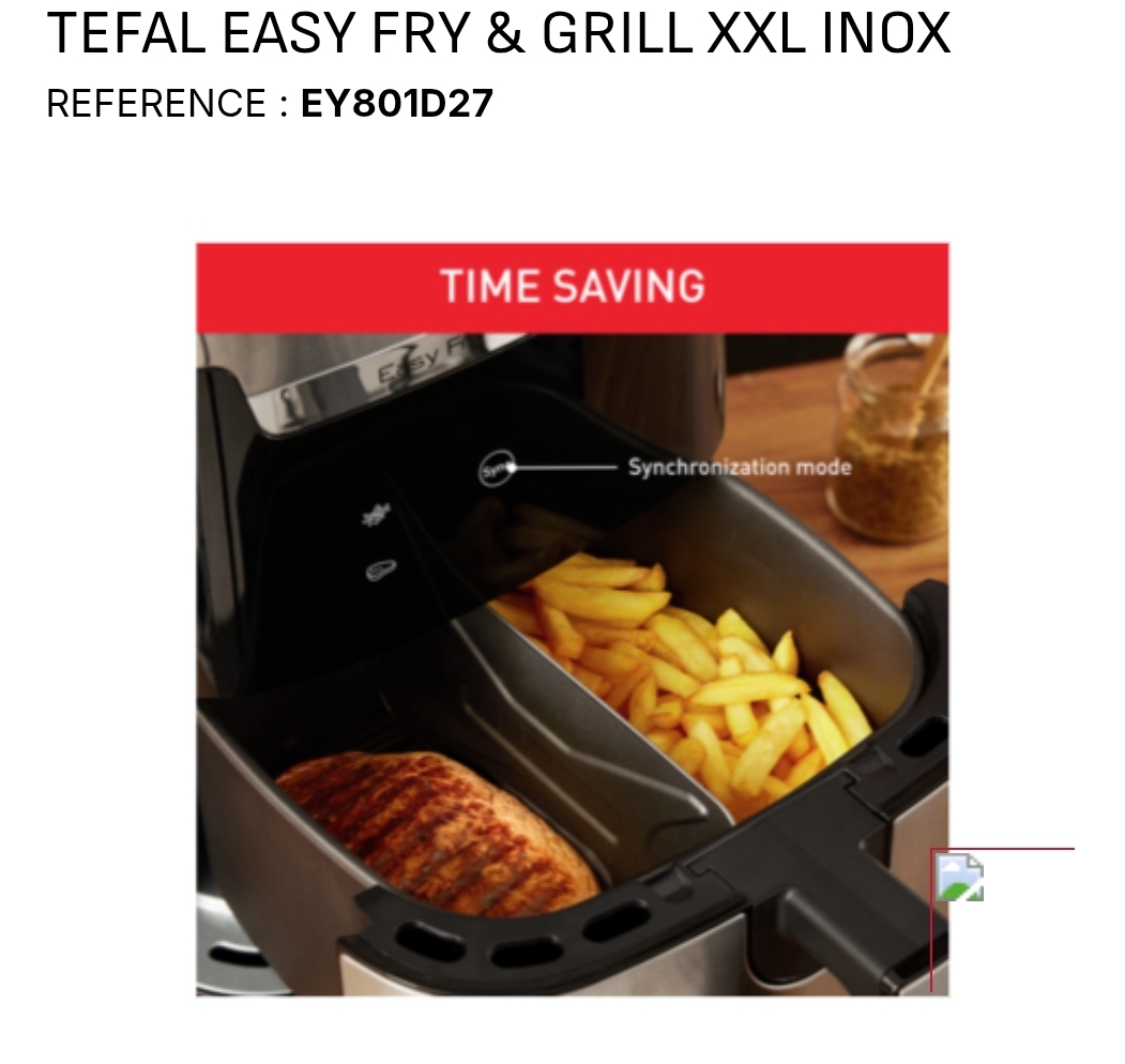 این سرخکن به فناوری Extra Crisp مجهز است و و بین جریان هوای گرم و دما، تعادل کاملی برقرار میکند تا بدون آنکه نیاز به اضافه کردن روغن مازاد داشته باشید، مواد غذاییتان کاملا سرخ شود. این محصول دارای گریل توری آلومینیوم دایکاست است. همچنین قطعهای با نام Flexcook دارد که سبد سرخکن به واسطه آن به دو نیم تقسیم میشود. همچنین از فناوری دیگری تحت عنوان Extra Crisp برخوردار است که به کمک آن روی سطح غذایتان ترد و برشته شده و بافت درون مواد غذایی شما تازه، آبدار و نرم باقی میماند. این سرخکن دارای ظرف گریل و قابلمهای با روکش نچسب ضدخش است. وزن آن 4.7 کیلوگرم بوده و ابعاد آن 37.5×31×32.5 است. درب آن دارای قفل بوده و بعد از تنظیم زمان جهت استفاده به طور خودکار در زمان مقرر شده خاموش میشود. این کالا از طراحی بسیار زیبا و منحصر به فردی برخوردار بوده و از قابلیت گریل مواد غذایی برخوردار است. همچنین حدود 49 درصد سریعتر از اجاق گازهای سنتی، مواد غذایی شما را گریل و سرخ میکند. برای لق نخوردن دستگاه یک پایه پلاستیکی برای آن طراحی شده، در بخشهایی از این دستگاه که پلاستیکی است از مواد فاقد BPA که سرطانزاست استفاده شده، کاسه سرخکن آن به شکل مربع، دارای روکش نچسب بوده و ظرفیت بالایی دارد ( ظرفیت سرخ